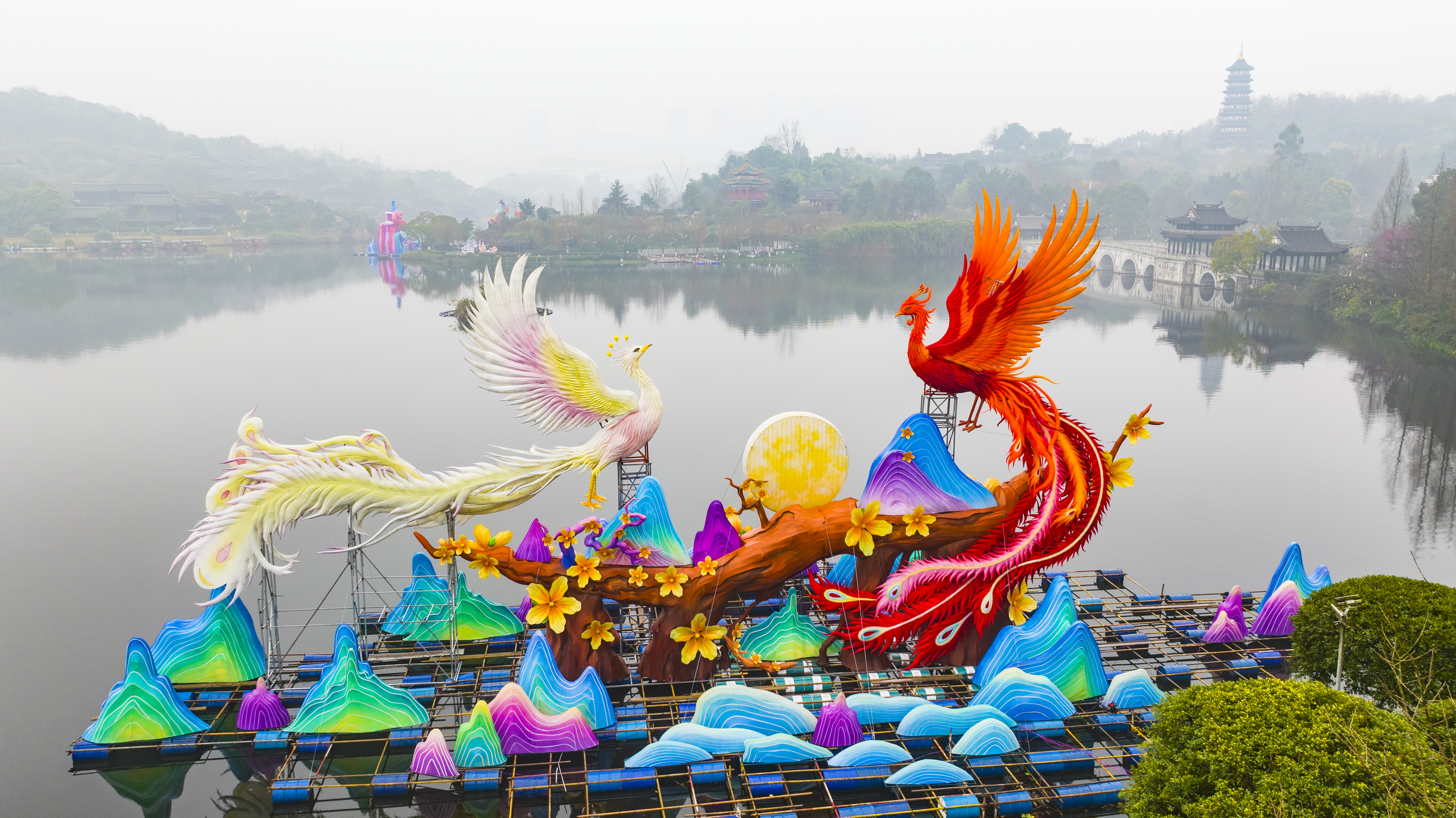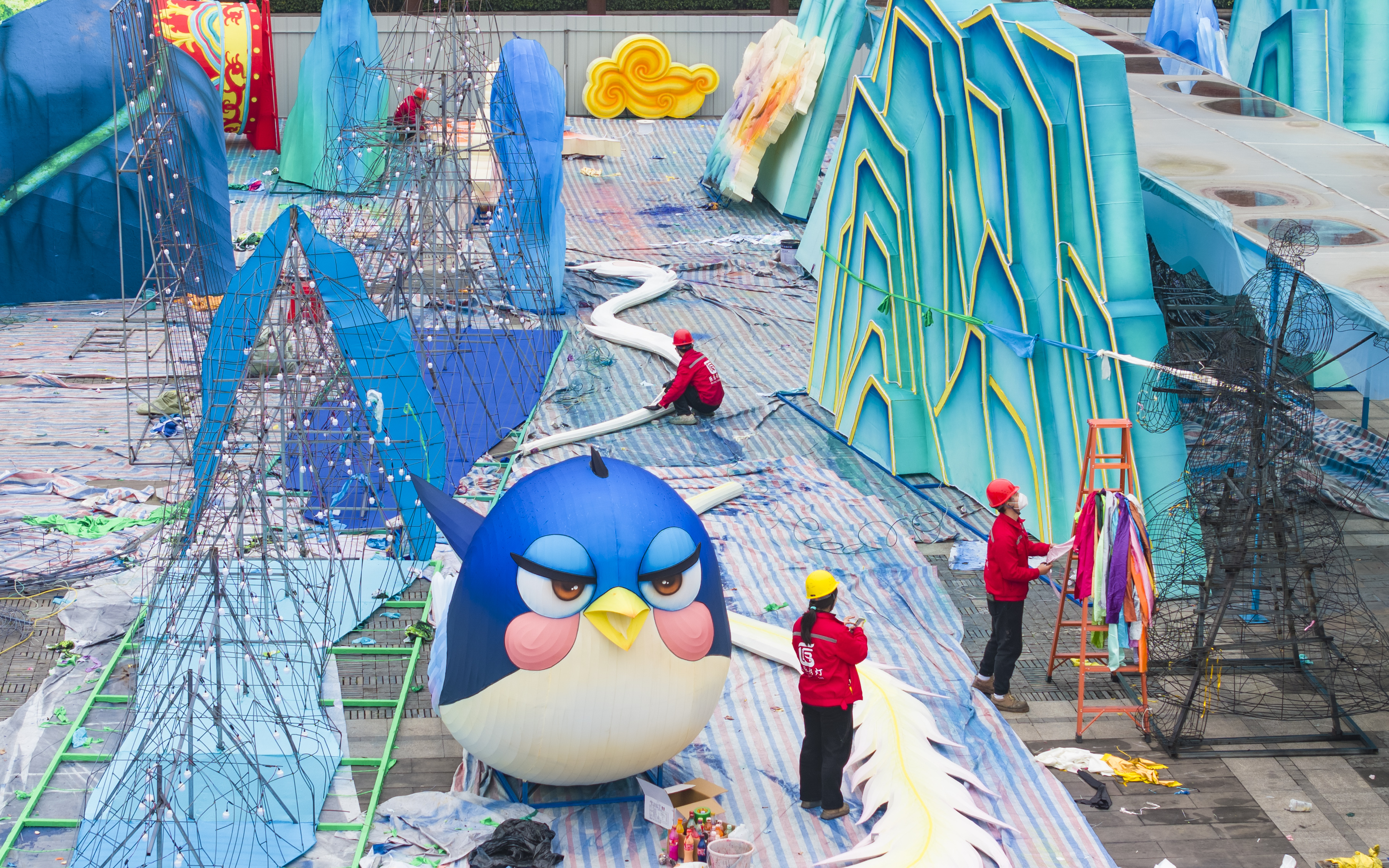 ▲重慶園博園,2026重慶市新春燈會(huì)——“禧歡霓”園博園大型水上燈會(huì)現(xiàn)場(chǎng),造型精美的彩燈已初現(xiàn)雛形。(無(wú)人機(jī)照片)記者 齊嵐森 攝/視覺(jué)重慶