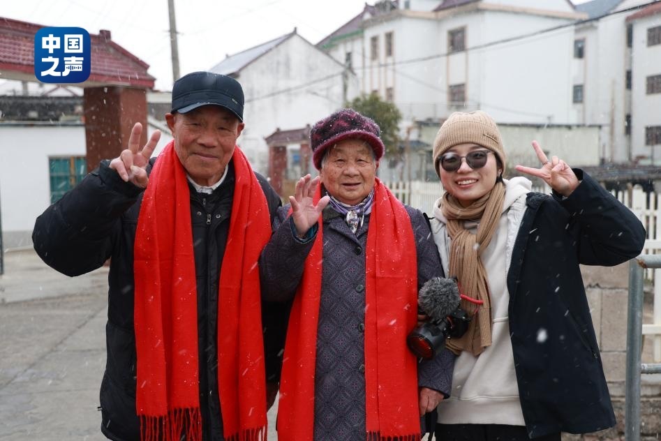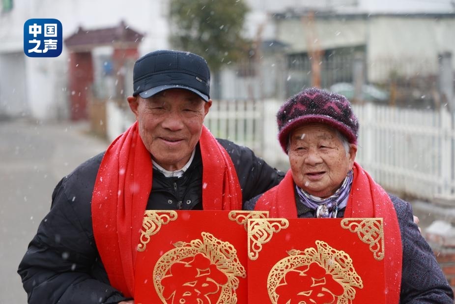 飄雪的冬日,陳真又一次如約來到上海金山嘴漁村,給她熟悉的“老朋友們”拍照。幾對(duì)相守幾十年的老夫妻舉著紅彤彤的大福字,圍著耀眼的大紅圍巾,笑聲朗朗?!芭c雪共白頭”的浪漫,陳真拍了一上午,也跟著老人們笑了一上午。
