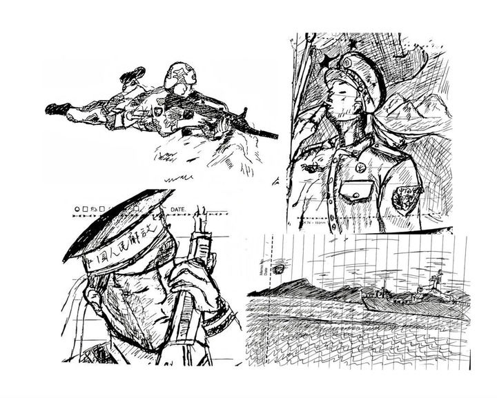 日記的封面印有金色大字“人民海軍”。翻開首頁,映入眼簾的是這樣一句話:“無名無利無悔,有情有義有祖國。”本子里還夾著一幅手繪插畫——一名軍人正向軍艦莊嚴敬禮。日記中還記錄著這樣的心聲:“一個軍禮,一生托付,一句誓言,一生承諾!”字里行間,是一個青年對家國的赤誠與擔當。