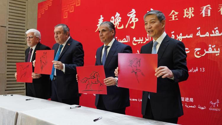 廖力強(qiáng)表示,感謝中央廣播電視總臺(tái)將“春晚序曲”帶來(lái)埃及,為埃及和阿拉伯朋友感知中國(guó)打開(kāi)一扇窗,為中埃、中阿人民相知相近架起一座橋。自中國(guó)春節(jié)在2024年申遺成功后,世界上越來(lái)越多的國(guó)家和人民與中國(guó)人民一道,慶祝春節(jié),共享歡樂(lè),中國(guó)年已成為世界年。中埃、中阿友誼源遠(yuǎn)流長(zhǎng),中國(guó)人民和埃及、阿拉伯人民的心始終緊緊連在一起。今年是丙午馬年,中埃、中阿、中非關(guān)系迎來(lái)建交70周年。在中國(guó)傳統(tǒng)文化中,馬寓意著進(jìn)取與希望。我們?cè)竿7揭坏溃砸获R當(dāng)先的沖勁、馬不停蹄的干勁,推動(dòng)雙邊關(guān)系朝著構(gòu)建面向新時(shí)代中埃命運(yùn)共同體的目標(biāo)前進(jìn),為中阿、中非關(guān)系增添新動(dòng)力,為維護(hù)世界和平穩(wěn)定、促進(jìn)全球發(fā)展繁榮作出更大貢獻(xiàn)。