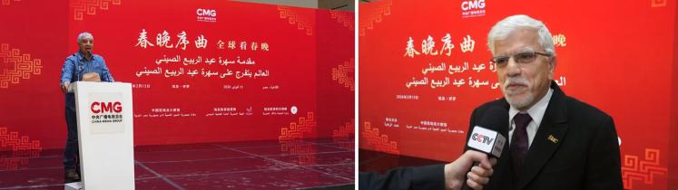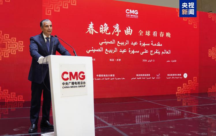 當(dāng)?shù)貢r(shí)間2月13日,“春晚序曲 全球看春晚”埃及專(zhuān)場(chǎng)活動(dòng)在開(kāi)羅舉行。本次活動(dòng)由中國(guó)中央廣播電視總臺(tái)與中國(guó)駐埃及大使館、埃及旅游和文物部、埃及旅游促進(jìn)局共同主辦。中宣部副部長(zhǎng)、中央廣播電視總臺(tái)臺(tái)長(zhǎng)慎海雄作視頻致辭。中國(guó)駐埃及大使兼駐阿盟全權(quán)代表廖力強(qiáng),埃及政府代表、埃及外交部亞洲事務(wù)部助哈姆扎,埃及前總理沙拉夫出席活動(dòng)并致辭。埃及考古學(xué)家、前文物部長(zhǎng)哈瓦斯,埃及旅游促進(jìn)局主席代拉提芙,埃及外交事務(wù)委員會(huì)執(zhí)行主任伊扎特,巴德?tīng)柎髮W(xué)副校長(zhǎng)巴斯歐尼,阿盟非洲事務(wù)司司長(zhǎng)布斯坦吉,阿盟理事會(huì)秘書(shū)處主任法赫米等中埃兩國(guó)政界、學(xué)術(shù)界、媒體界代表200余名嘉賓參加活動(dòng)。