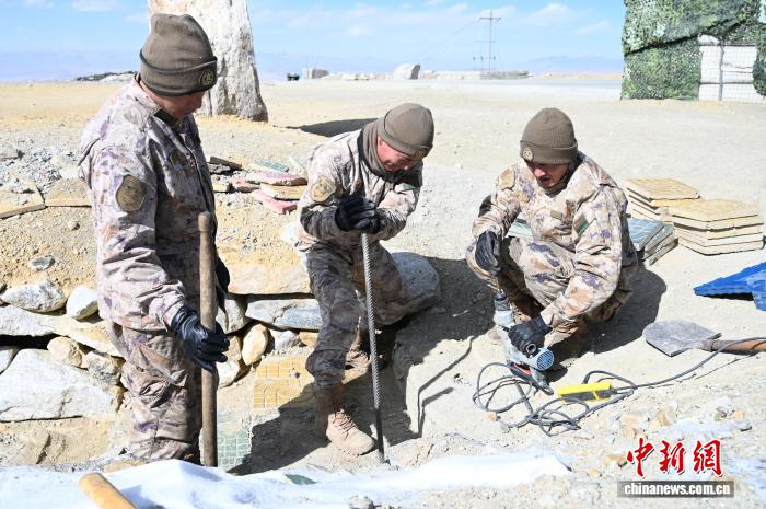 圖為在5592哨所,戰(zhàn)士們?cè)诰S修臺(tái)階。趙朗 攝
