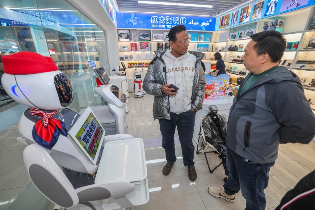 2月28日,外國(guó)客商在義烏全球數(shù)貿(mào)中心選購(gòu)商品。新華社記者徐昱 攝