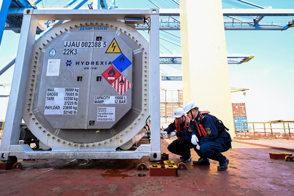 為了保障儲氫設(shè)備順利出運(yùn),在交通運(yùn)輸部海事局的指導(dǎo)下,上海海事局與遼寧海事局針對企業(yè)需求,圍繞設(shè)備特性、運(yùn)輸條件和安全要求,組織專家開展技術(shù)評估,對設(shè)備結(jié)構(gòu)完整性、安全附件配置、應(yīng)急處置措施及安全運(yùn)輸條件等進(jìn)行全鏈條論證和指導(dǎo)。