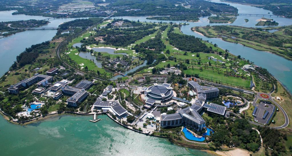 俯瞰博鰲零碳示范區(qū)所在地海南省瓊海市博鰲鎮(zhèn)東嶼島(3月19日攝,無人機(jī)照片)。