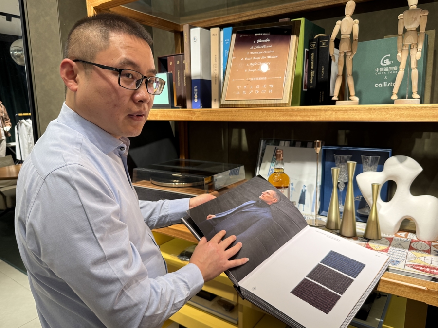 作為上海本土品牌,于建軍對(duì)自家的工藝十分自信:“我們的打版師就是從杰尼亞引入的高端人才,客人可以自由選擇杰尼亞、皮亞琴察、切瑞蒂1881等高端面料,定制價(jià)格從5000元到10萬(wàn)元不等,定制周期在25個(gè)工作日左右?!彼嘎叮岸螘r(shí)間一位卡塔爾王室成員來(lái)滬,一口氣定制了3件襯衫、一套西服,他上門去量體裁衣,去年12月完成定制后由翻譯官帶回卡塔爾,對(duì)方反饋“超級(jí)滿意”,表示還會(huì)來(lái)上海定制。