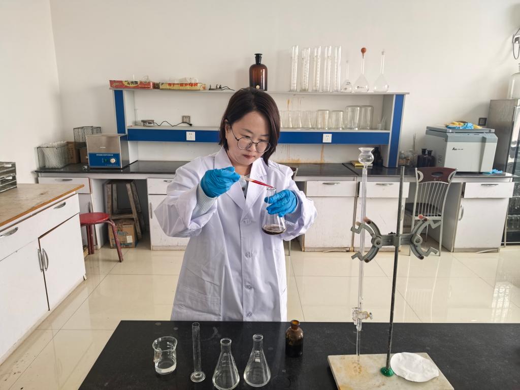 內(nèi)蒙古興安農(nóng)墾集團有限責(zé)任公司測土配方辦公室技術(shù)人員正在進行化驗。(王萍 攝)