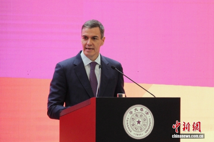 4月13日,北京,西班牙首相桑切斯在清華大學(xué)演講。中新社記者 曾玥 攝