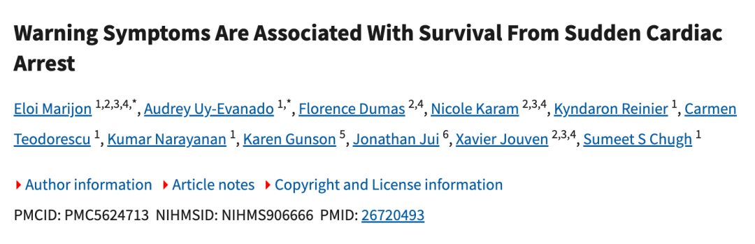 2016《內(nèi)科學(xué)年鑒》刊發(fā)的一篇文章,首次大規(guī)模證實(shí)心臟驟停前存在可識(shí)別的預(yù)警癥狀,打破了“猝死毫無(wú)征兆”的傳統(tǒng)認(rèn)知。研究納入的839名心臟驟?;颊咧?,430名有先兆癥狀,占51%,主要為:胸痛、呼吸困難、頭暈。①