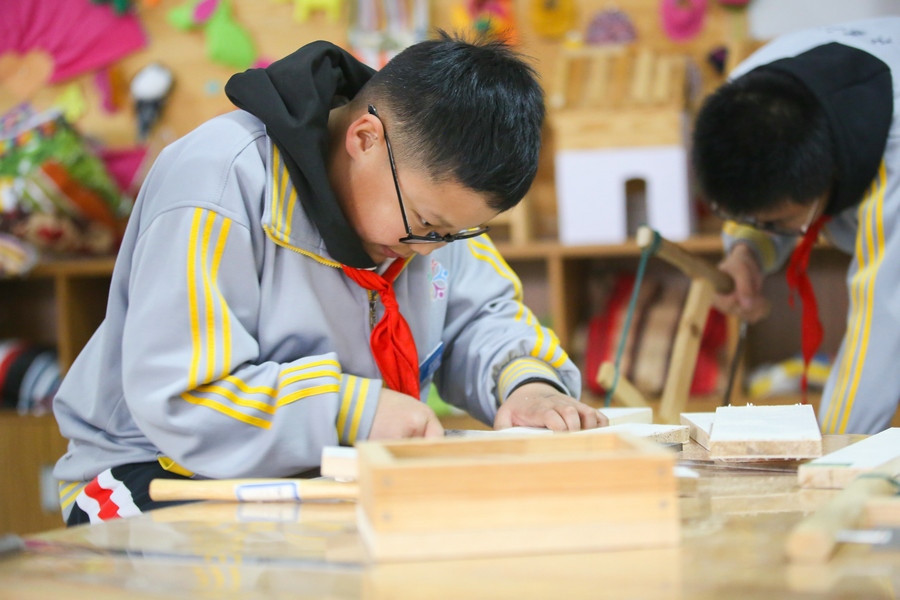 同學(xué)們正在進行勞動技能活動 彭瑞誠攝影