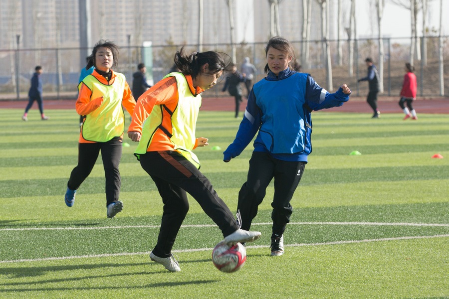 內(nèi)蒙古中學(xué)生女子足球隊(duì)員選拔現(xiàn)場(chǎng)