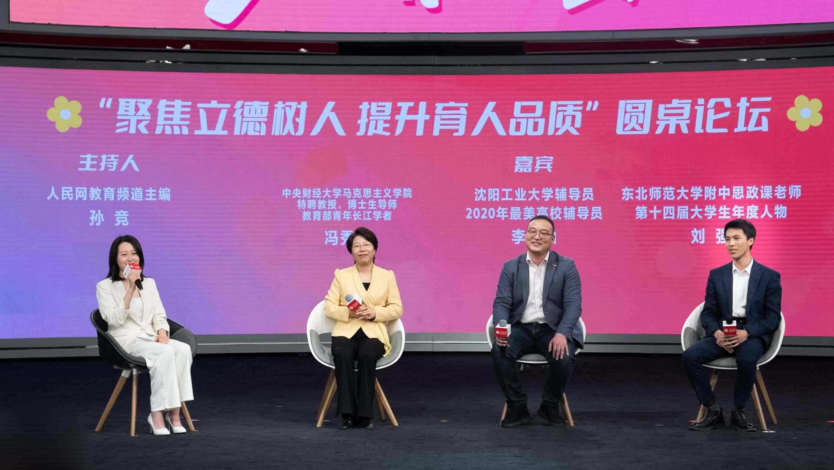 在“聚焦立德樹人,提升育人品質(zhì)”思政圓桌環(huán)節(jié)上,人民網(wǎng)教育頻道主編孫競與多位教育一線思政老師展開對話。中央財經(jīng)大學(xué)馬克思主義學(xué)院特聘教授、博士生導(dǎo)師、教育部青年長江學(xué)者馮秀軍表示,“一百多年前那個時代的青年,用青春和熱血為我們打造出了今天這樣一個中國青年可以平視世界的新天地。我們這片熱土,蘊含了無限的力量和希望,希望同學(xué)們投身實踐,尋找到我們的使命,從而獲得青春奮進的力量。”