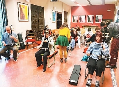 西班牙格大孔院學(xué)員正在上中國民樂課。