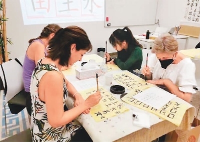 西班牙格大孔院學(xué)員正在上中國書法課。
