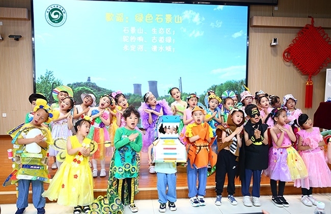 此外,九中教育集團(tuán)所屬的首鋼幼教金頂街園等幼兒園的孩子們上演了精彩的“幼兒生態(tài)保護(hù)時(shí)裝秀”。他們身穿利用生活廢棄物品精心制作成各種造型的服裝,巧妙傳遞出了“變廢為寶”的環(huán)保理念。歌謠表演《綠色石景山》也為孩子們上了一堂生動(dòng)的爭(zhēng)做環(huán)保小衛(wèi)士、友愛相伴小動(dòng)物的課程。