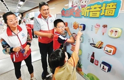 日前,福建省廈門市婦聯(lián)攜手相關(guān)部門舉辦“快樂‘六一’ 安全童行”2023年“六一”體驗(yàn)式生命教育趣味游園活動。圖為小朋友們在參加食品安全聽音墻活動。 徐 林?jǐn)z