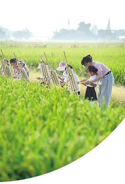 四川眉山市彭山區(qū)學(xué)院路幼兒園學(xué)生在田間寫生。翁光建攝(影像中國(guó))