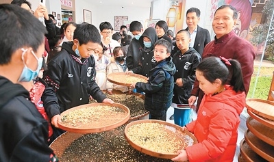 在福州教育學(xué)院附屬第二小學(xué),臺灣青少年近距離領(lǐng)略中華傳統(tǒng)文化的獨(dú)特魅力。書法藝術(shù)的雅致、篆刻技藝的精妙、掐絲琺瑯的華麗、金箔畫書簽的韻味……每一項(xiàng)體驗(yàn)都給臺灣青少年留下深刻印象。福州茉莉花茶傳統(tǒng)窨制工藝傳承人張子健現(xiàn)場展示了茉莉花茶制作技藝,不少臺灣青少年興趣盎然地跟著學(xué)習(xí)。兩岸青少年還攜手種下“連心樹”,期盼友誼之樹茁壯成長,未來見證彼此情誼的延續(xù)與發(fā)展。