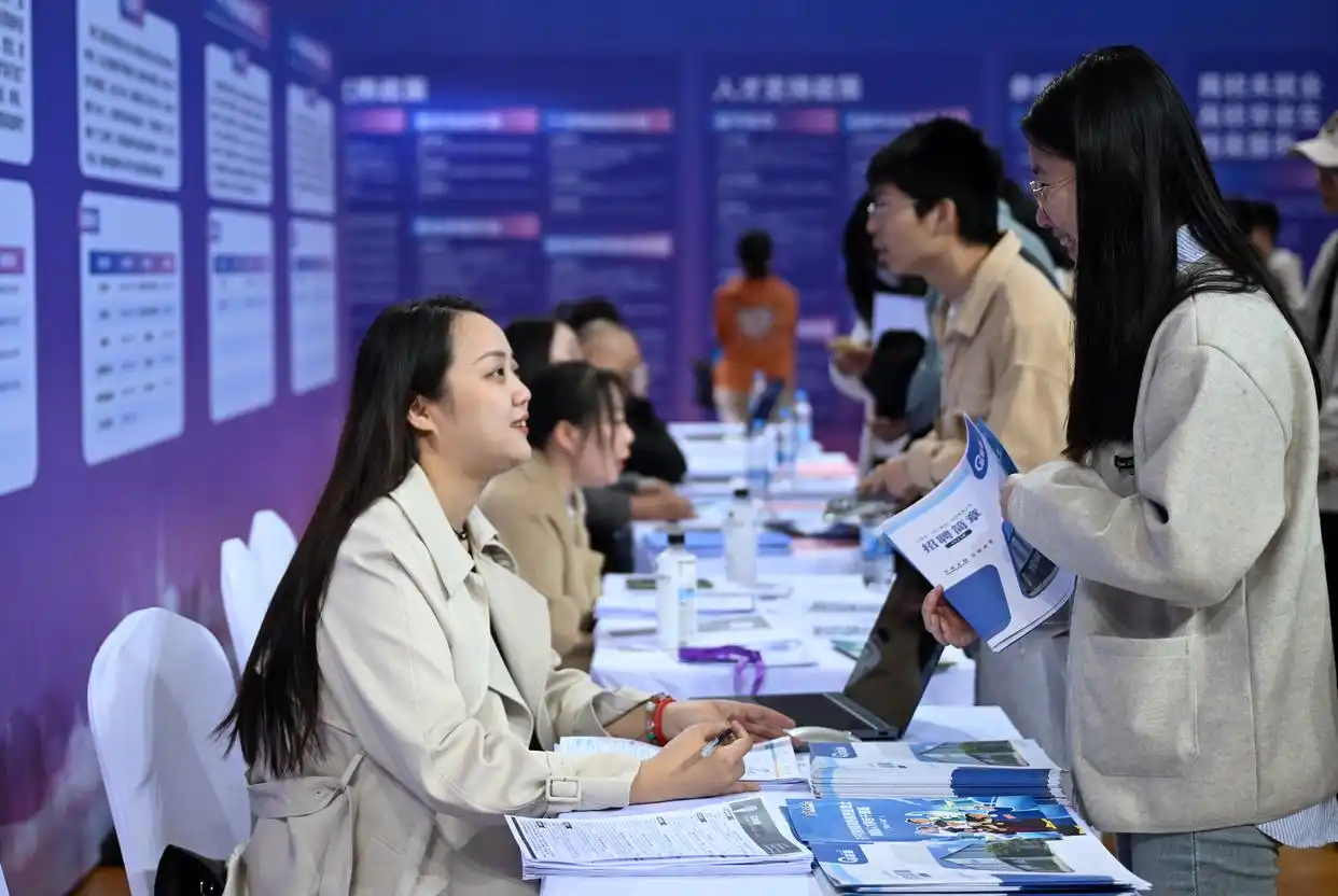 3月20日,環(huán)渤海城市聯(lián)合招聘高校畢業(yè)生春季專場(chǎng)活動(dòng)在天津職業(yè)技術(shù)師范大學(xué)啟動(dòng),來(lái)自環(huán)渤海地區(qū)400多家企業(yè)提供崗位1.1萬(wàn)個(gè)。活動(dòng)現(xiàn)場(chǎng)還設(shè)立就業(yè)服務(wù)臺(tái),為學(xué)生提供指導(dǎo)。圖為當(dāng)日,求職學(xué)生(右)和招聘方代表在招聘會(huì)現(xiàn)場(chǎng)交談。新華社記者 趙子碩攝