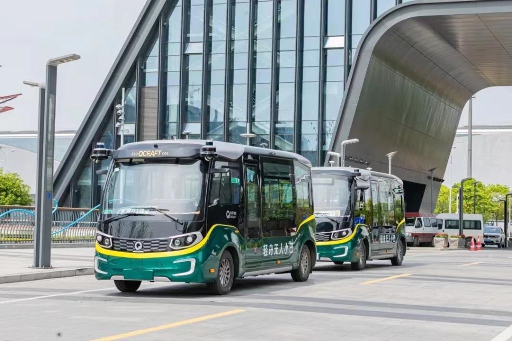 純電無人駕駛公交小巴穿梭在蘇州高鐵新城。(蘇州高鐵新城管委會供圖)