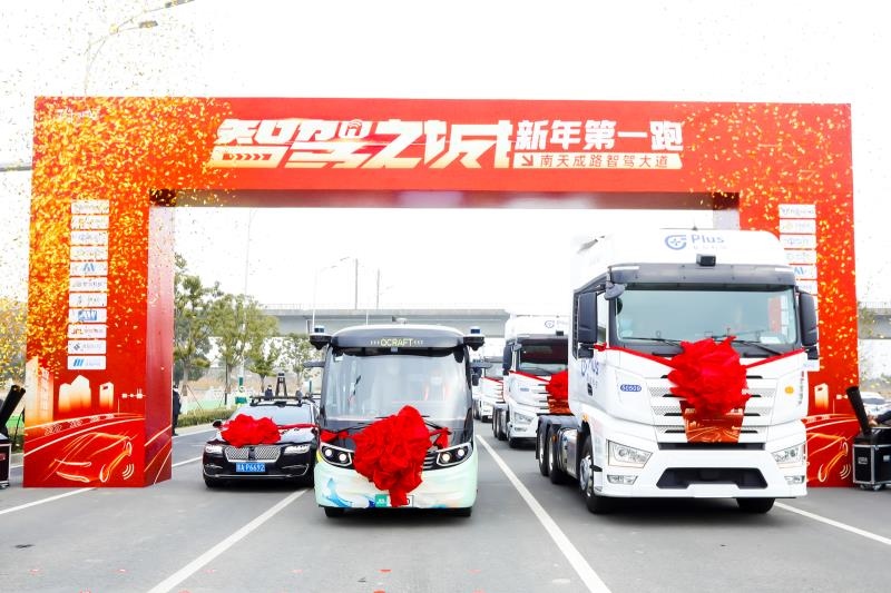 蘇州開展“智駕之城新年第一跑”,多款無人駕駛車輛同時上路。(蘇州高鐵新城管委會供圖)