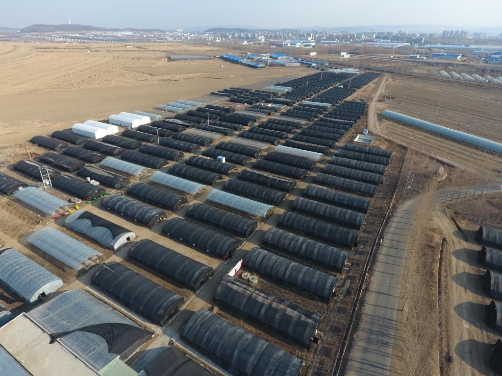 悅來(lái)頤和食用菌種植專(zhuān)業(yè)合作社的部分大棚(無(wú)人機(jī)照片)。新華社記者 王松 攝