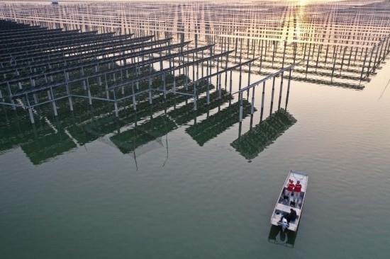 江蘇宿遷天崗湖,國網(wǎng)宿遷供電公司員工走進光伏基地檢查發(fā)電上網(wǎng)設備(2月15日攝)。新華社發(fā)(王松竹攝)