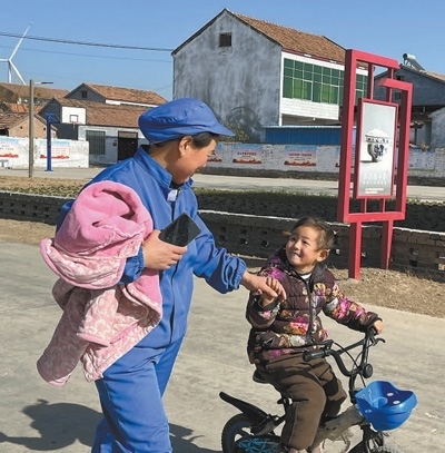 從劉攀登的醬菜廠出來(lái),記者碰上村民張玉霞牽著孩子回家吃午飯。