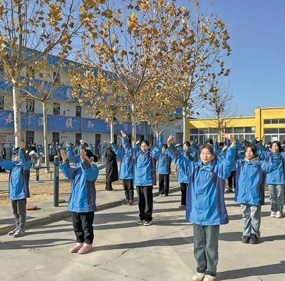 麥仁學(xué)校的學(xué)生在做課間操。