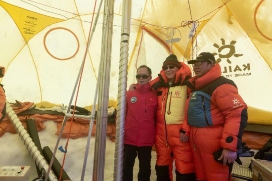 9月12日,美國科學院院士、中國科學院外籍院士湯普森和中國科學院院士、第二次青藏科考隊隊長姚檀棟一起,搭乘直升飛機抵達海拔6100米的普若崗日冰原10號冰川冰穹C作業(yè)點。在這里,中國科學院青藏高原研究所副所長徐柏青率領(lǐng)的第二次青藏科考隊普若崗日冰原冰芯鉆取與冰面過程科考小組正在進行深冰芯的鉆取。