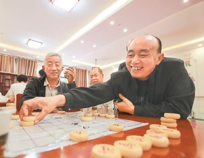 貴州省黔東南苗族侗族自治州岑鞏縣在新型城鎮(zhèn)化建設(shè)中,大力建設(shè)社區(qū)服務(wù)中心、圖書(shū)室等場(chǎng)所,完善服務(wù)功能,提升群眾幸福感。圖為社區(qū)居民在該縣大有鎮(zhèn)大坪同心社區(qū)下象棋。