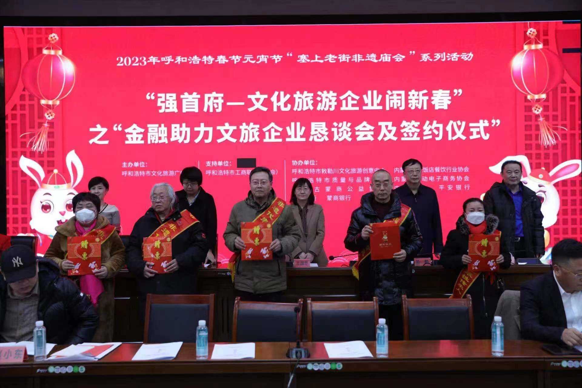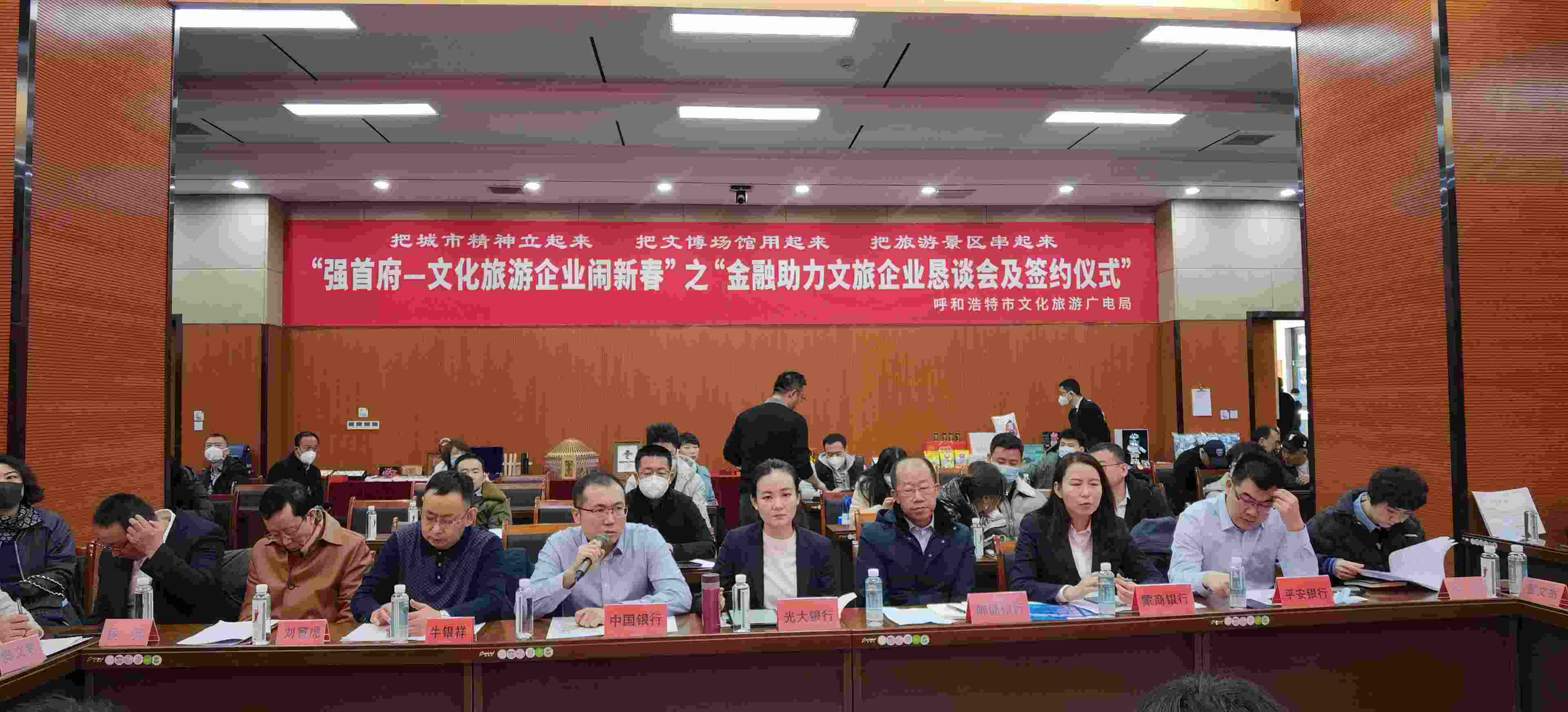 2月4日,呼和浩特市文化旅游廣電局與呼市工商聯(lián)(總商會)舉辦“強首府—文化旅游企業(yè)鬧新春”之“金融助力文旅企業(yè)懇談會及簽約儀式”,共同為首府提振市場信心、促進文化旅游產(chǎn)業(yè)高質量發(fā)展、促進首府“六大產(chǎn)業(yè)集群”作出貢獻。