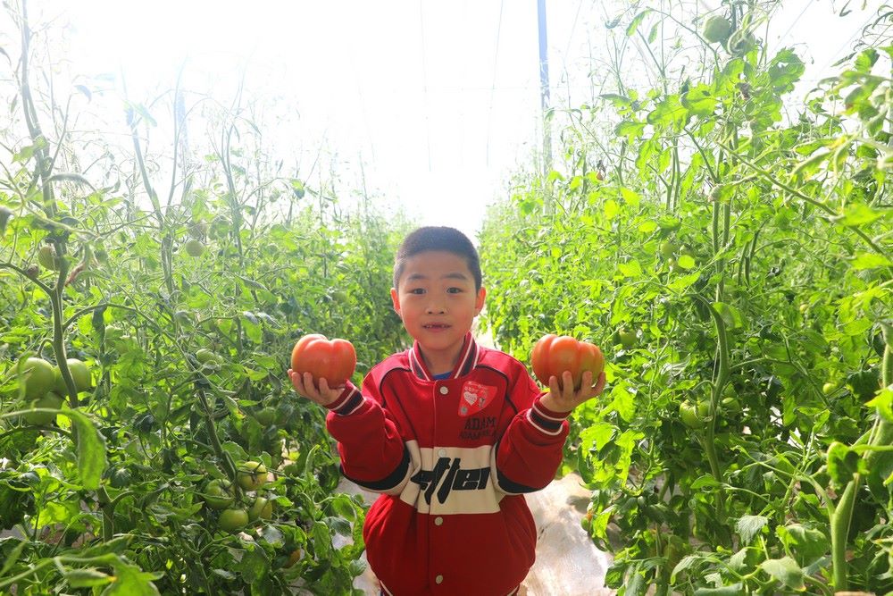 游客在阿勒坦設(shè)施農(nóng)業(yè)基地采摘西紅柿 記者 張楊攝影