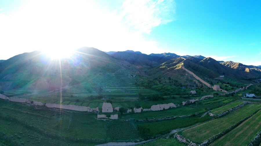 8月16日,從空中視角,俯瞰山西大同天鎮(zhèn)李二口長(zhǎng)城。