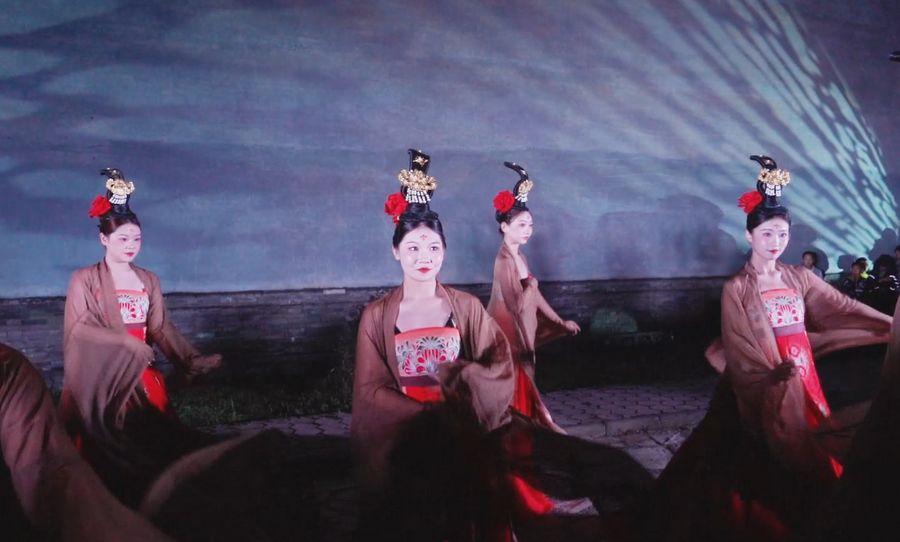 傍晚6時(shí),活動(dòng)在實(shí)景舞蹈《古城賞月》中拉開帷幕。演員們身著飄逸漢服,伴隨悠揚(yáng)古樂翩躚起舞,再現(xiàn)古代市井賞月之景,瞬間將觀眾帶入詩意盎然的歷史長(zhǎng)河。隨后,晉劇《繁華》以高亢激越的唱腔、細(xì)膩傳神的表演,展現(xiàn)了晉地戲曲的獨(dú)特韻味,贏得陣陣掌聲。