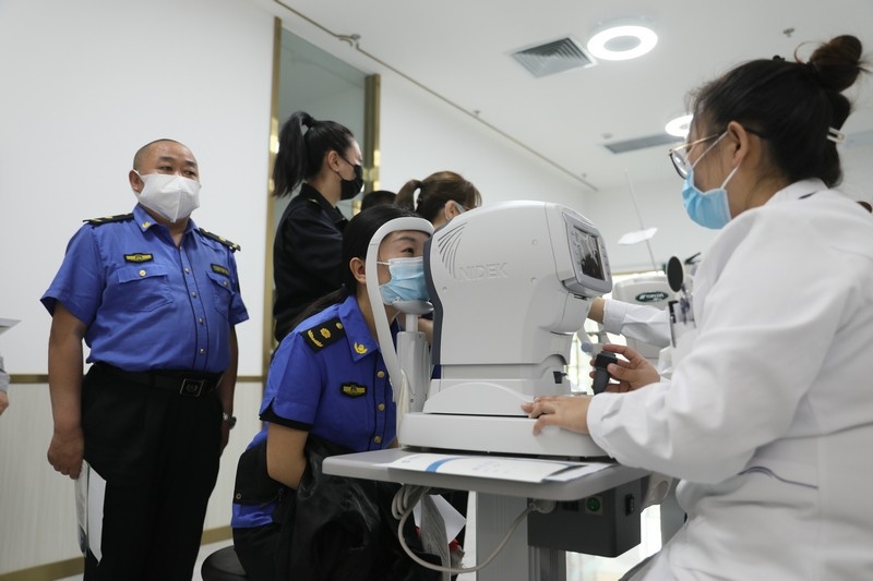 活動現(xiàn)場,醫(yī)院派出了一流的醫(yī)護人員為抗疫人員進行眼健康項目檢查,并對檢查中發(fā)現(xiàn)問題的人提供一對一的專家咨詢服務(wù)。