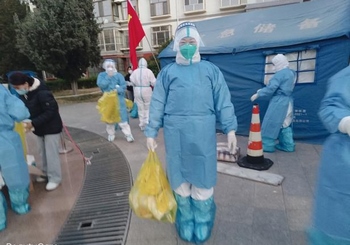 在附屬醫(yī)院,像龐云霞一樣在封控小區(qū)“就地上崗”的黨員“大白”還有許多,入戶(hù)采核酸、錄信息,參與小區(qū)消殺清潔,貢獻(xiàn)出自己的一份力量。