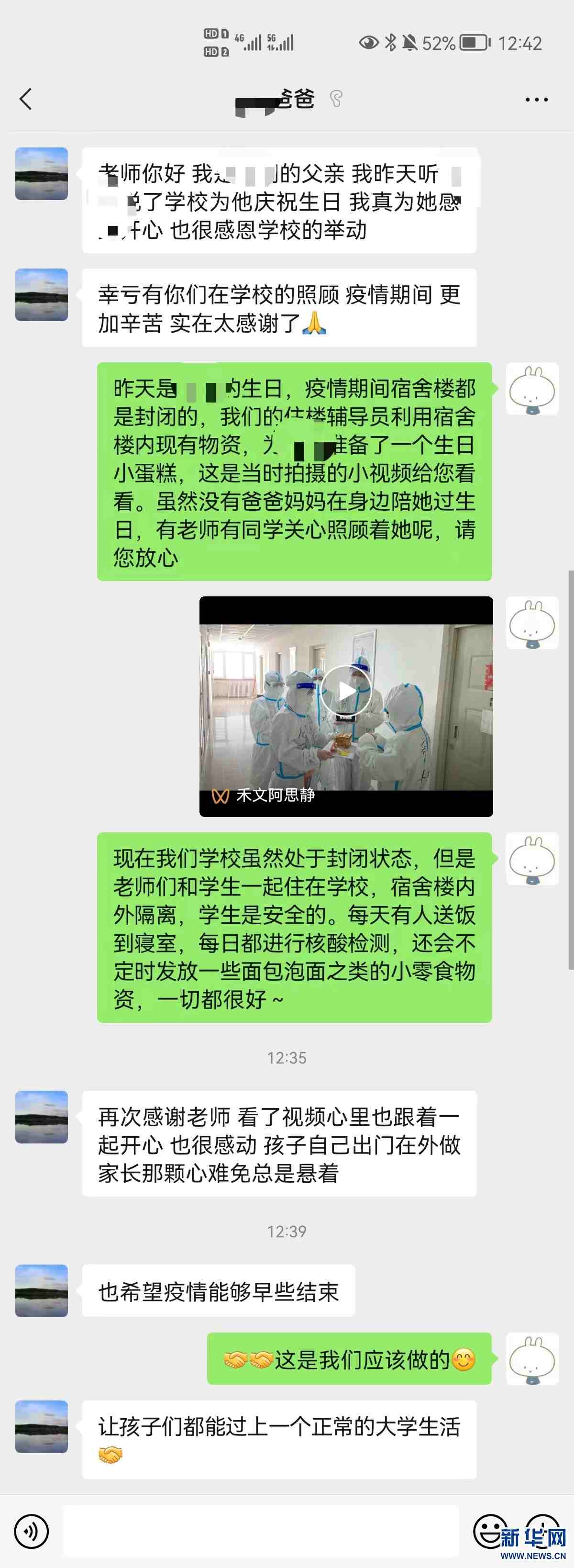 內(nèi)蒙古工業(yè)大學北二公寓學生家長向老師們表示感謝。新華網(wǎng)發(fā)(受訪者供圖)
