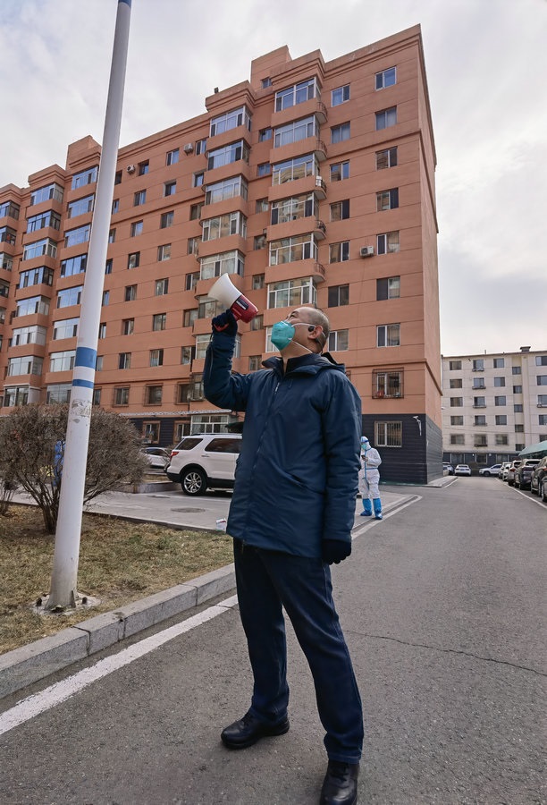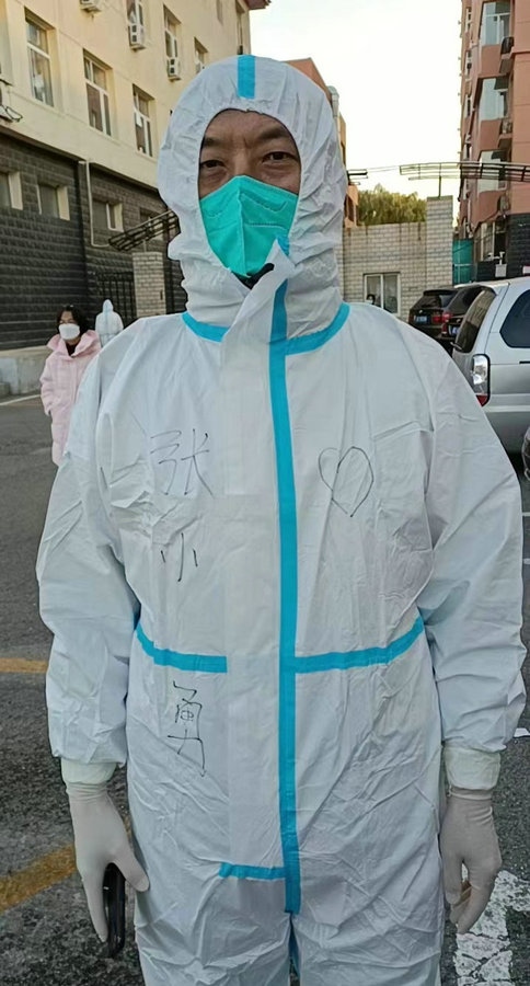 “看到群里招募志愿者,我就掃碼進(jìn)群了,和大家一起自發(fā)管理小區(qū)?!眴虂嗛f(shuō),自己個(gè)子高又胖,防護(hù)服根本穿不進(jìn)去,所以只能拿上喇叭,挨個(gè)樓棟挨個(gè)單元去喊,小區(qū)里15棟樓43個(gè)單元,他都要喊到,一上午要走10000多步,算下來(lái)也有五六公里了。