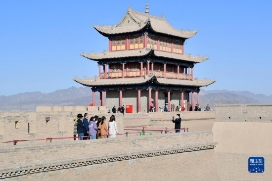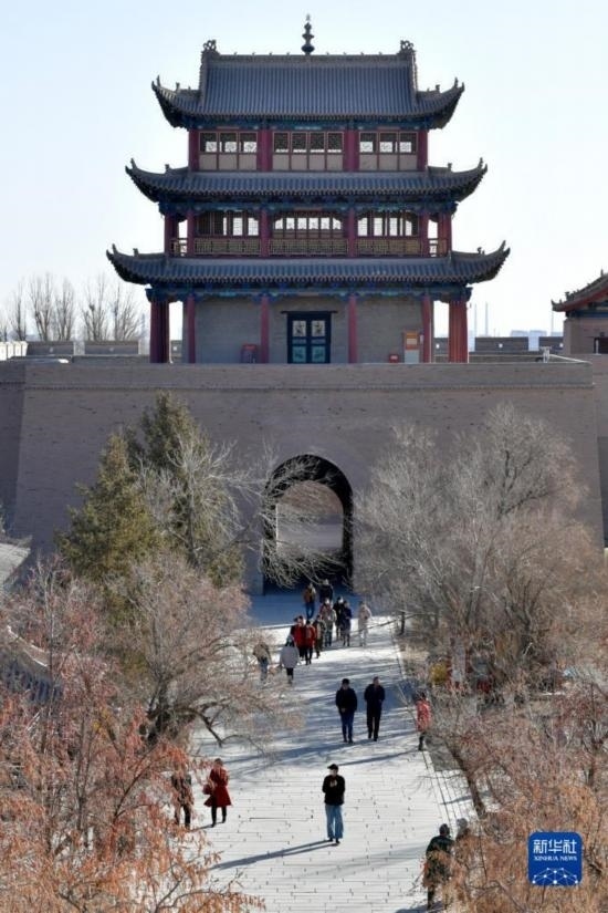 3月4日,游客在嘉峪關關城景區(qū)參觀游覽。