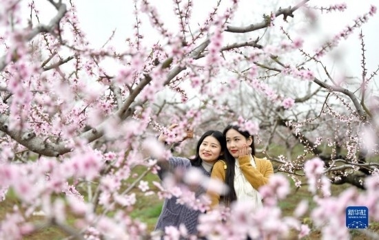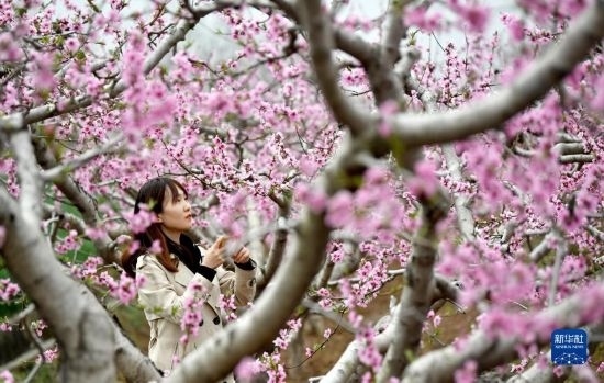 一場(chǎng)春雨過后,陜西省西安市臨潼區(qū)零口街道的桃花競(jìng)相綻放,吸引游人賞花拍攝。