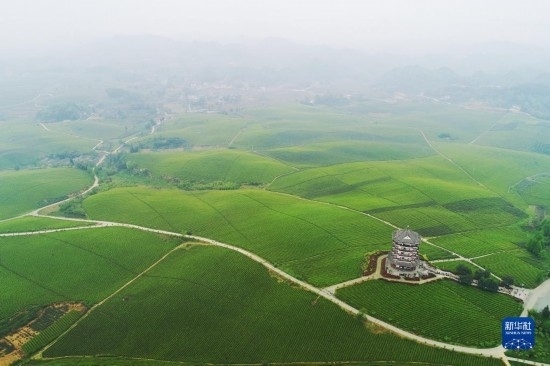 2021年4月12日拍攝的貴州省湄潭縣的“萬畝茶?!憋L(fēng)光(無人機照片)。