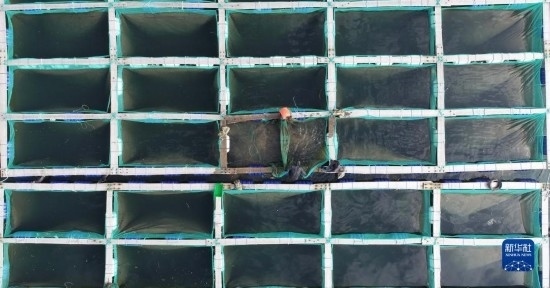 5月19日,廣鹿島鎮(zhèn)的漁民在轉(zhuǎn)運(yùn)海參苗(無(wú)人機(jī)照片)。