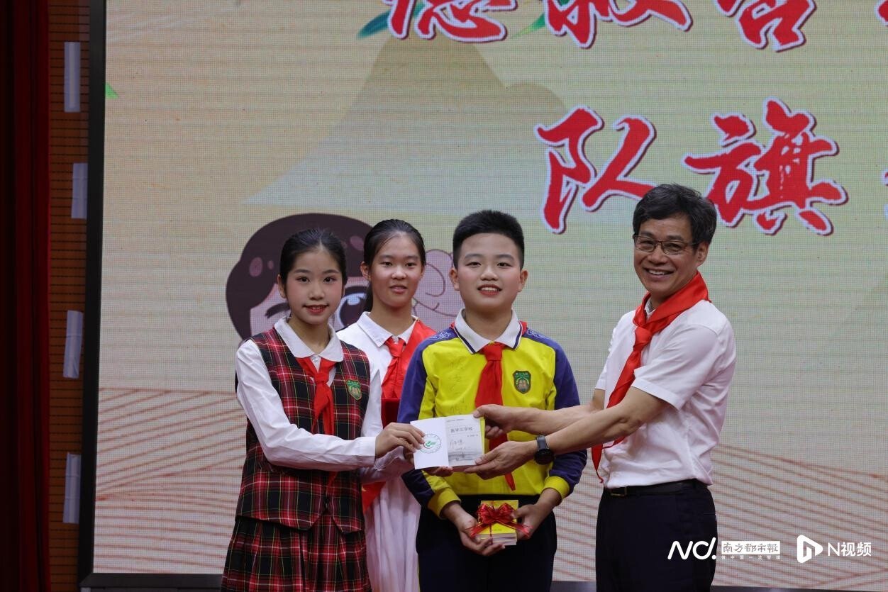 近年來,廣東省中醫(yī)院開展中醫(yī)藥文化進校園活動。5月31日,第一屆“德叔杏林研學(xué)中隊”的隊員即將畢業(yè),他們將隊旗鄭重地交回德叔手中,并收下德叔親筆簽名的《醫(yī)學(xué)三字經(jīng)》。而這面象征中醫(yī)藥文化的隊旗也傳遞到新一屆“德叔杏林研學(xué)中隊”隊員的手中,同時,德叔還贈送了中藥種子,寓意中醫(yī)藥文化生生不息、薪火傳承,在雙方共同打造的這片中醫(yī)藥文化熱土生根發(fā)芽,開花結(jié)果。
