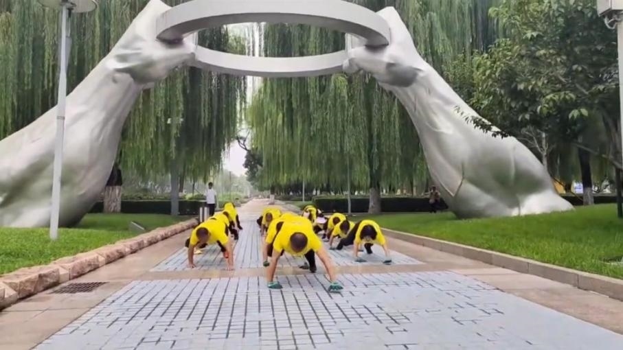 ·男子帶數(shù)十人團(tuán)隊(duì)在公園鱷魚爬:可鍛煉全身,越來越多的人加入。
