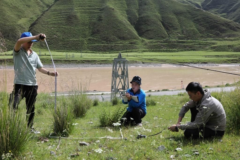 7月22日,長江科學(xué)院水土保持研究所的科考隊員在通天河直門達(dá)河段進(jìn)行植被樣方調(diào)查。新華社記者劉詩平攝