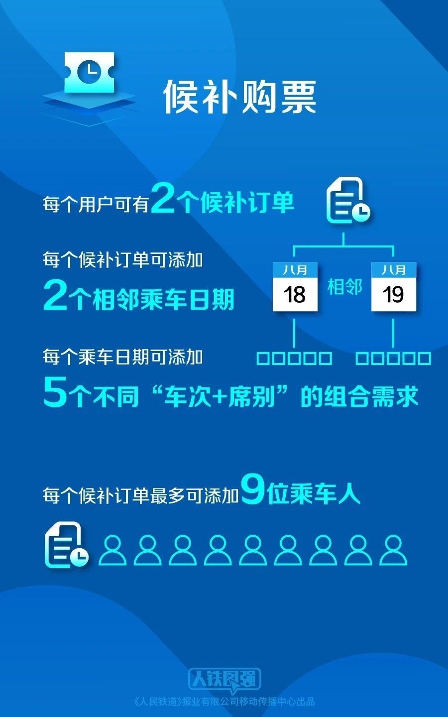 目前,旅客每天可提交發(fā)到站相同或同城不同車站的兩個(gè)相鄰日期候補(bǔ)車票,從以前的各2張?jiān)黾拥礁?張。
