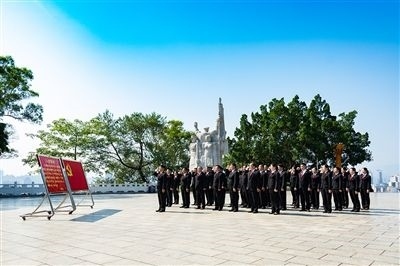 “我志愿加入中國共產(chǎn)黨,擁護(hù)黨的綱領(lǐng),遵守黨的章程……”今年7月,百色市中級(jí)人民法院黨員到百色起義革命烈士紀(jì)念碑廣場開展黨日活動(dòng),緬懷革命先烈,重溫入黨誓詞。鏗鏘的誓詞,久久回蕩在紀(jì)念碑上空,銘刻在每一個(gè)人的心頭。