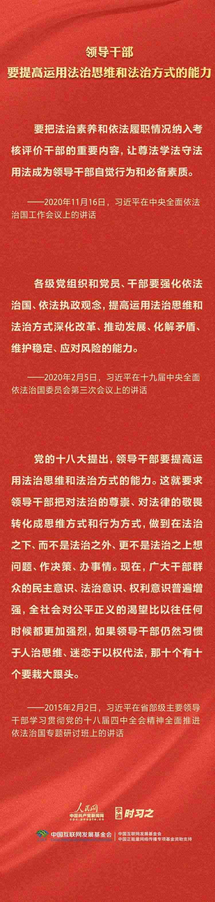 今年是貫徹落實黨的二十大精神的開局之年。中共中央政治局決定從今年4月開始,在全黨自上而下開展學習貫徹習近平新時代中國特色社會主義思想主題教育。習近平法治思想是習近平新時代中國特色社會主義思想的重要組成部分,人民網(wǎng)·中國共產(chǎn)黨新聞網(wǎng)推出學法時習之·學習習近平法治思想系列策劃,本篇聚焦“堅持抓住領導干部這個‘關鍵少數(shù)’”。