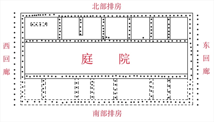 “結(jié)合以往考古發(fā)掘成果來看,古城寨遺址城內(nèi)中部偏東區(qū)域為宮殿核心區(qū)。”李博說,“新發(fā)現(xiàn)的1號夯土臺基、東部夯土遺跡,與以往發(fā)現(xiàn)的宮殿建筑基址、廊廡基址一道,在平面布局上構(gòu)成了四合院式的宮殿建筑群?!?/p>